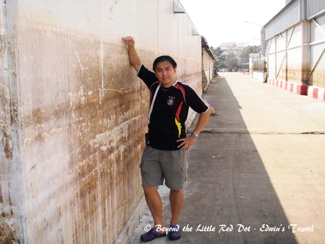 We drove further north to Rojana where most of the automobile car makers were located. We could see that some low lying areas were still underwater. The industrial estate looked like a war zone with piles of sandbags lining the fences and entrances to factories. Every building and structure was covered in a brown film of dried mud.