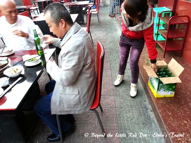 For our last night in Chengdu, we decided to have a better dinner. So we went walking along the street to check out the local restaurants.