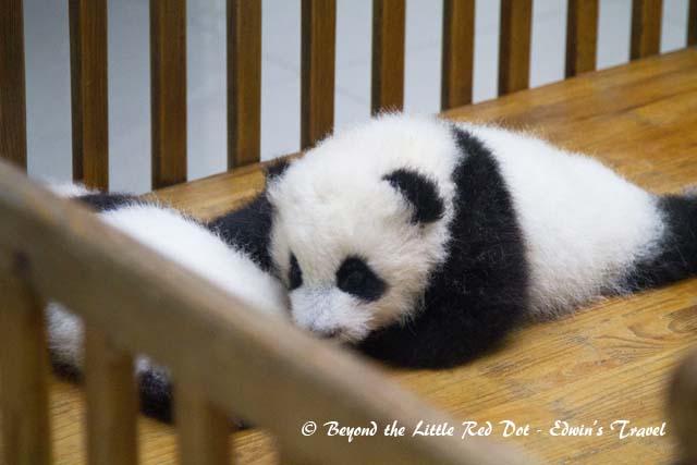 As a breeding and research base, the pandas are encouraged to reproduce although most of the births are through artificial insemination. I got to see the panda babies through a glass window. Tourists are not allowed to touch the babies although you can make a ‘donation’ of RMB2,000 to hug a panda baby and take a photo with it. I heard that despite the high price, there is a long line of people willing to hug a baby panda and they have to limit the number of people per day. Otherwise, you can apply to be a volunteer worker at the research base and hug panda babies all day, although I think the main duties of volunteer workers are to clear panda poop.