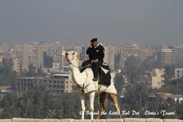 It’s only right that the policeman should be riding a camel in Egypt instead of a horse.