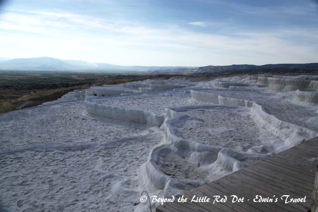 We had to walk past the ruins of Hieropolis to get to the Cotton Castle.A map of Hieropolis and how it would have looked like at its zenith.All that is left of its amphitheater.The terraces are natural and formed from travertine, a type of rock that is deposited by the hot springs.Some of the terraces have dried up to form these amazing structures.The mineral rich waters are believed to have curative properties and people were bathing or wading in them.We came back to our hotel which had its own hot spring pool.