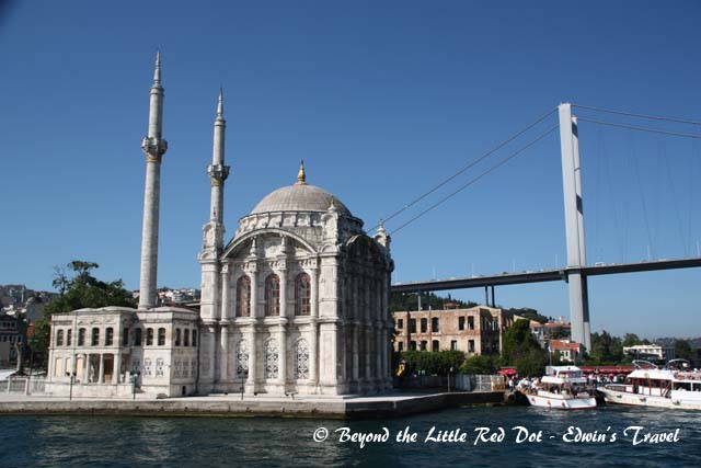 We got off the ferry at Ortakoy. Formerly a small village, it’s now a hip place with night clubs, bars, cafes, restaurants and art galleries.