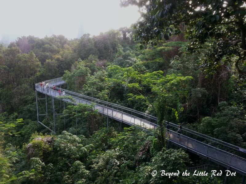 The Forest Walk stretches for 1.3km on elevated platforms. It also climbs upwards and at the end, you will find yourself on Telok Blangah Hill. From here you can follow the road that goes round the hill, or take a short but steep climb up to the summit.