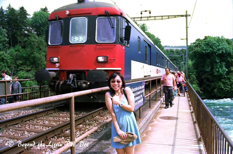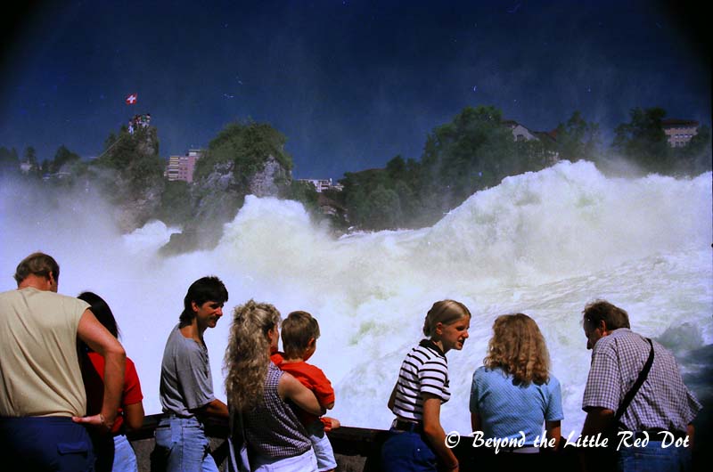 How would you like to be surrounded by the raw power of a thundering waterfall around you? You can experience that without going to any of the mega waterfalls like Niagara or Victoria Falls, but right in the rather small and quaint town of Schaffhausen in Switzerland.