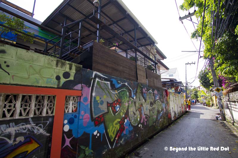 The small soi outside Arte House. I like it with it’s many amenities like laundry, restaurants and spas. Just beside is a larger boutique hotel where you can have a good meal and rent bicycles or motorbikes for getting around.