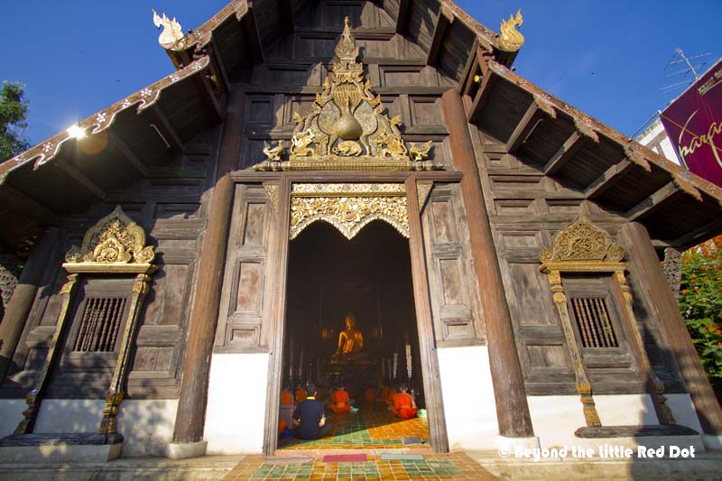 Novice monks were having their morning prayer service at Wat Phan Tao which is next to Wat Chedi Luang. This temple is worth a visit too.