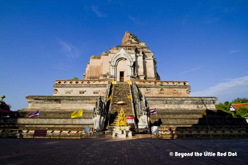 The stupa of Wat Chedi Luang. It was damaged in an earthquake in 1545 and remains like that until now.