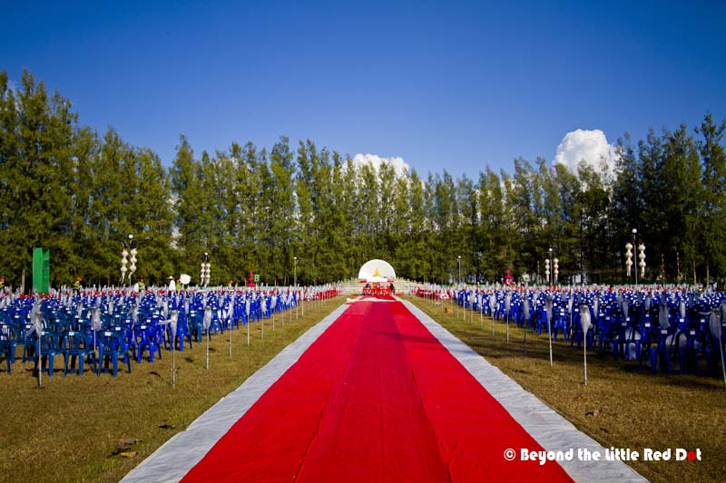 The release of the sky lanterns was only allowed from 9pm on 25th November onwards as regulated by the Thai authorities, because they will stop all flights at Chiangmai Airport by that time. Even with the late timing, we found ourselves at the festival venue by 4pm to avoid the large crowds which were converging at Mae Jo. I must say that paying US$100 to join a festival that could have been free reeks of commercialism, but being a paid event it had it’s privileges. It was properly organized with each of us given 3 sky lanterns to release, dinner and refreshments were provided, there were proper toilet facilities, everyone was given a designated seat so that we don’t have to fight over prime spots, and due to the limited tickets, there was no over crowding which made it a more pleasant experience.