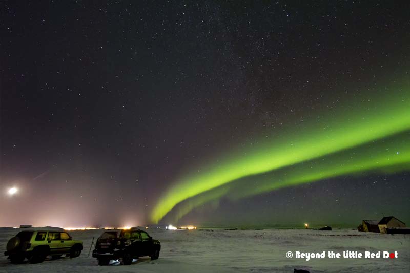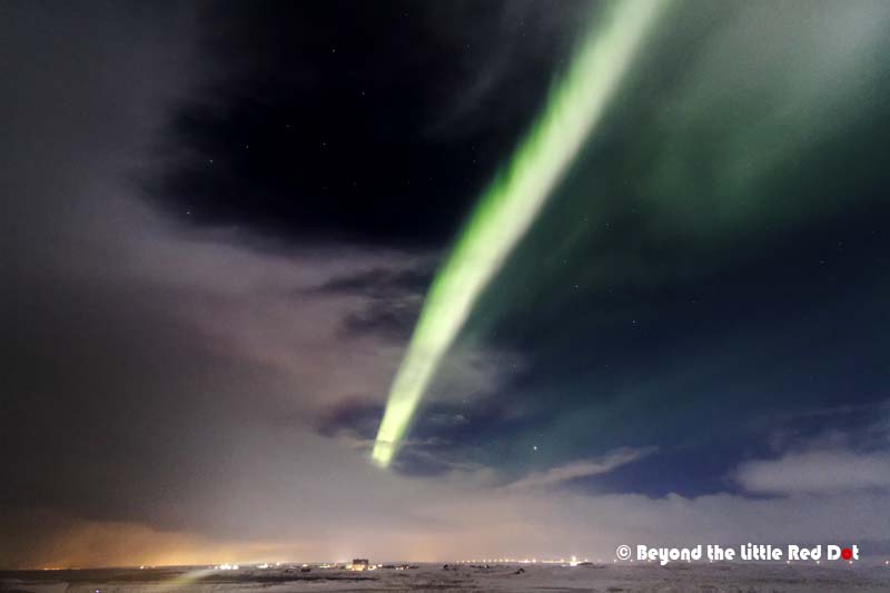 The Aurora Borealis is elusive and several factors have to come together in order to see them. Firstly, there must be solar activity, like solar flares or bursts. Secondly, the weather must be clear. Cloud cover can block out the view even if there is going to be a light show that night. The Aurora happens at least 60 miles up in the sky which is way above most clouds. And of cause, you have to find somewhere dark and away from city lights. To help everyone in getting a good chance to see the Northern Lights, the Iceland Meteorology Department has a website where you can check the strength of the Aurora and cloud cover. This is a helpful tool if you want to find out the best time and place to view the Aurora. The strength of the Aurora is measured on a scale of 0-9. Most of the time, it’s 3-4 for an average display like what you see in my photos above. At times it can go to 5-6 for a strong display, but it doesn’t mean that it will definitely appear. There were nights when the forecast predicted a 5 and nothing appeared to our disappointment. On our last night, the forecast was level 3, but the Aurora that appeared was much brighter and intense, and we were treated to a brief but brilliant display of multi-coloured lights dancing in the sky, just like what we’ve seen in the movies. So you’ll never know.