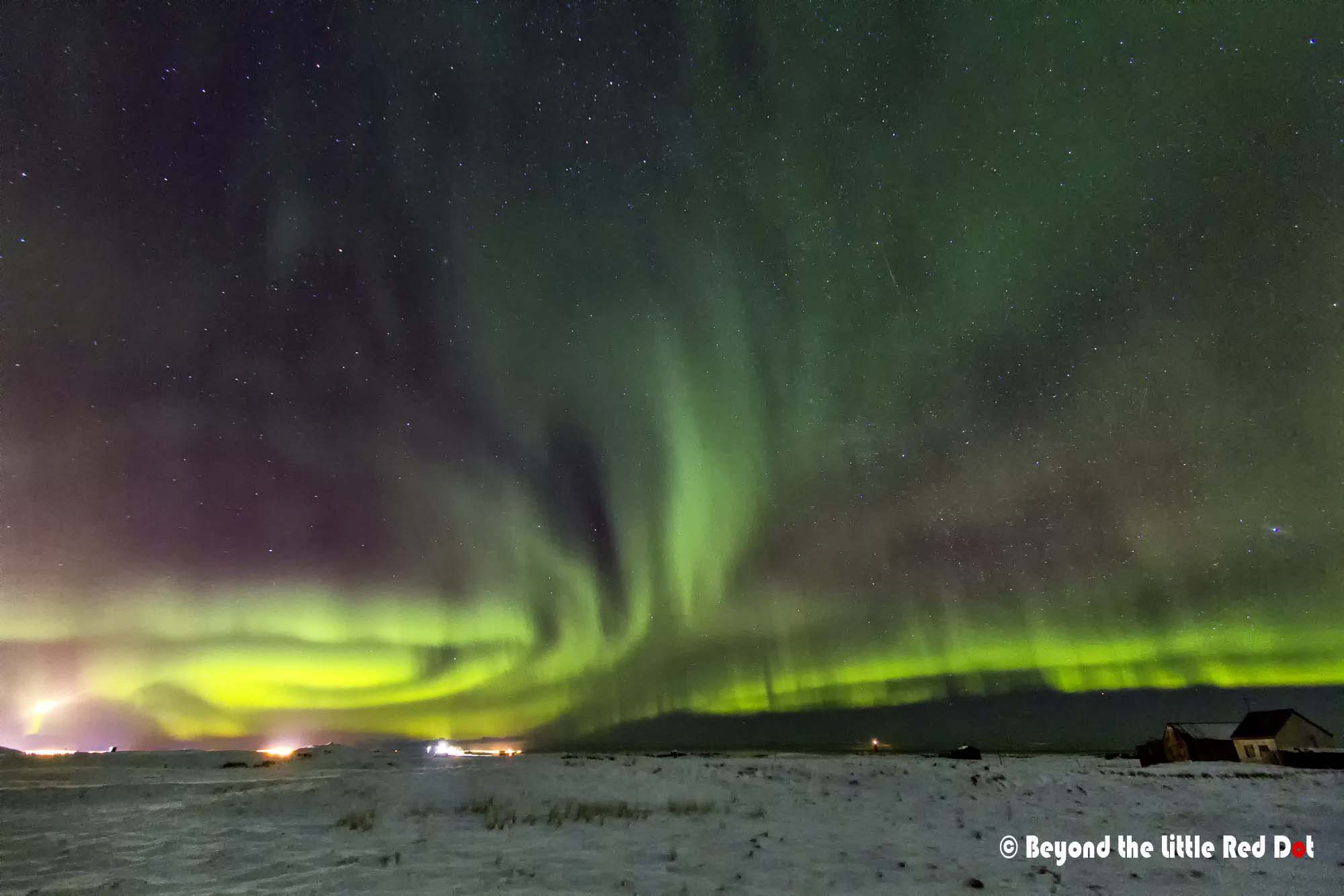 For a lot of people like us, the first time seeing the Northern Lights can be a disappointment. After watching movies where they are portrayed as dancing columns of multi-coloured light covering the whole sky, expectations are high, and we hate to think that we travelled thousands of miles to be let down. But the movies are as always, an exaggerated reflection of reality. I learned that what is shown in the movies does happen, but rarely, especially if there is high solar activity like a solar flare, and the Aurora explodes in a multi-coloured fashion show.