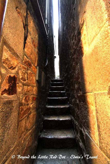 How did Mont St. Michel come about? According to legend, in 708AD, the archangel Michael appeared to the bishop of Avranches and instructed him to build a church on the rocky island that we see now. Later on in history, English forces laid siege to the island during the Hundred Years war but failed to capture it. The island’s remoteness and inaccessibility helped in it’s defense as it could only be accessed by foot during low tide, and invaders had to navigate through the tidal quicksands surrounding the island or get stuck and be swallowed by the rising tide.