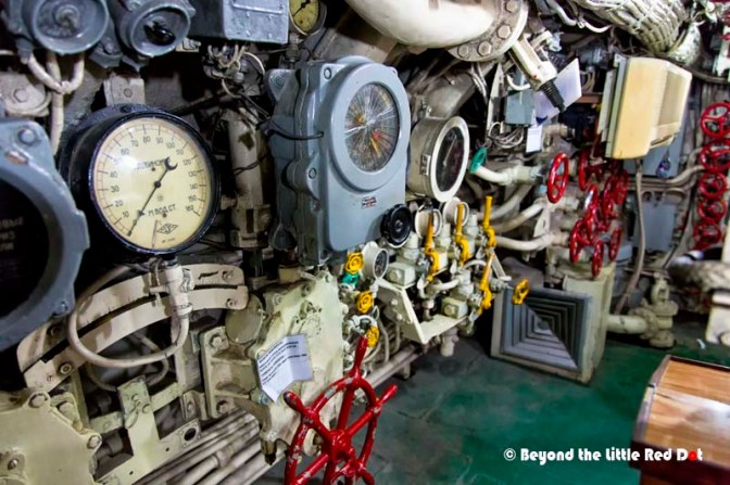 As you walk towards the rear of the submarine, you will pass by various sections like the crews’ quarters, communication room, captain’s quarters, mess hall, etc. Honestly, I can’t imagine 52 people being squeezed into this small space for long periods of time.