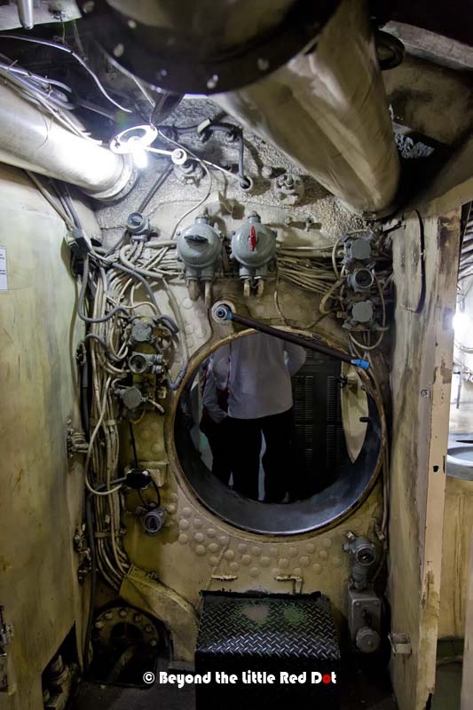 Now comes the part where we had to squeeze through these round hatches to continue on the tour.