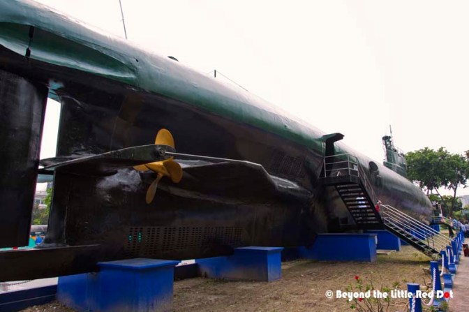 After a 15 minute taxi ride from North Quay where our cruise ship was berthed, to the city center, I could see the hulking shape of a submarine rising above the trees. Locally known as Monumen Kapal Selam, or Submarine Monument, this is a decommissioned Russian submarine from the cold war era that has been turned into a museum.