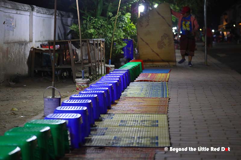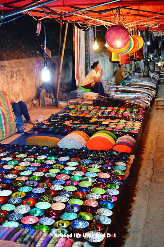 Luang Prabang doesn’t have much of a night life and most restaurants and bars close around 9-10 pm. The night market is the only night activity in town besides watching backpackers getting drunk in bars. By 9.30 pm most of the shops in the night market will be closing, as the main road gets cleared for the following morning’s Alms Giving ceremony.
