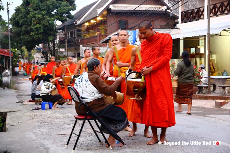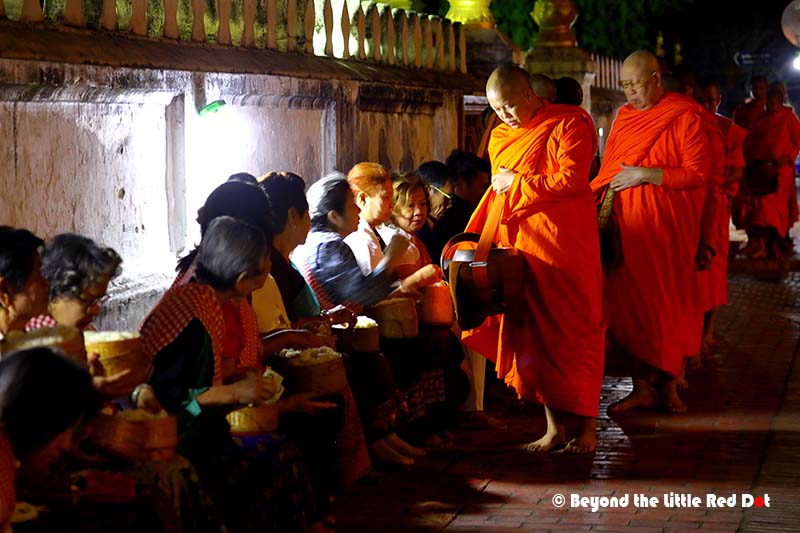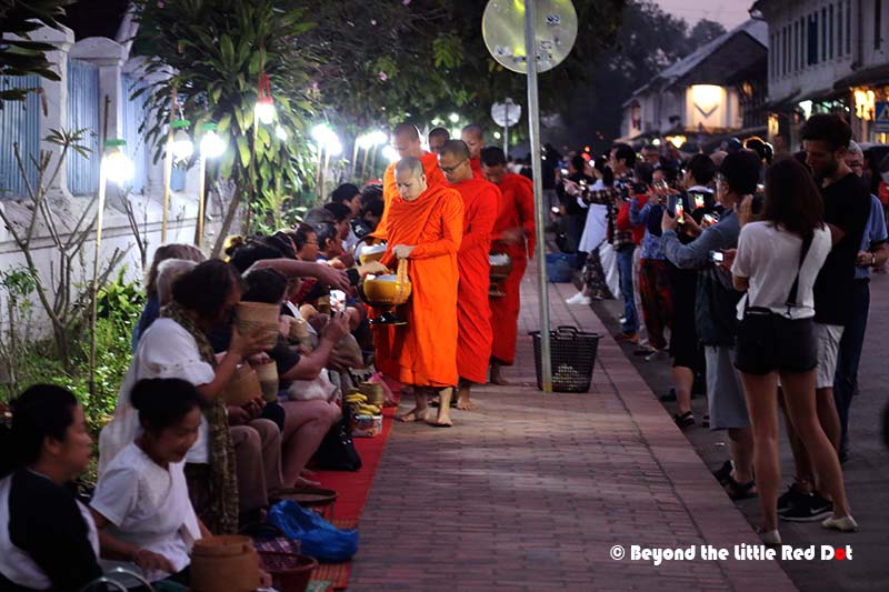 Mass tourism rears it’s ugly head, as in recent years, the Alms Giving ceremony has been hijacked to cater to tourists. Tourists have replaced the locals in giving alms, while an army of tourists and photographers try to get a good photo, at times rudely shoving cameras and smartphones into the faces of the monks.