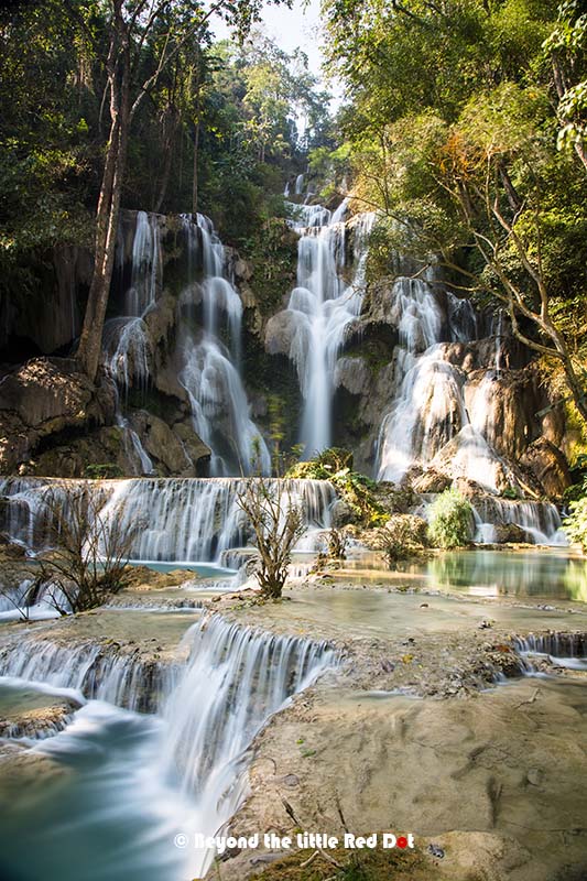 If you don’t know what the fuss is about Kuang Si Falls. It’s a beautiful waterfall with terrace like pools at the bottom where visitors can swim or soak in. You can’t swim at the main falls, but the pools downstream are open to the public.