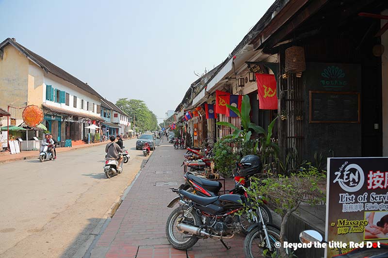 The main street in Luang Prabang with rows of 19th century shophouses. Because of it’s UNESCO status, the shophouses are not allowed to be developed above 2 floors and must conserve the traditional look. There isn’t a single traffic light in town, and despite the frequent traffic congestion, nobody sounds their horn, unlike many of the other Asian cities.