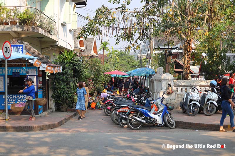 The morning market takes place in the small alleys near the Royal Palace. This particular alley is directly opposite the library building.