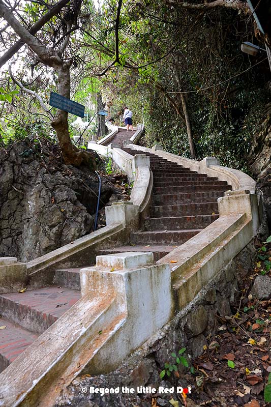 The most prominent natural feature in Luang Prabang is Mount Phousi. This is a small hill that is considered holy by the locals. At 100m high, it’s a short climb to the top where there is a temple and viewing platforms. There is an entrance fee of 20,000 Kips which you pay when you are halfway near the top. That’s a smart way to make visitors pay, since you would have spent so much effort climbing up and to turn back just because you didn’t want to pay would be a waste.