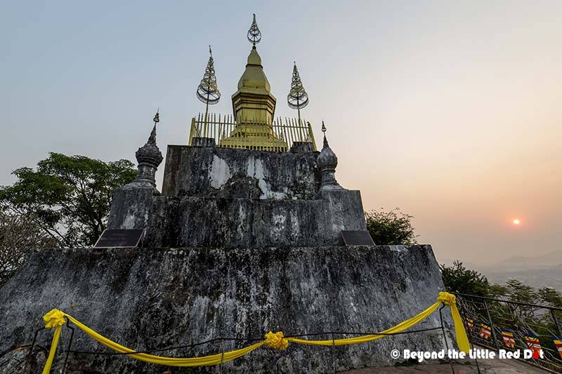 Sunset is the most popular time for visiting Mt. Phousi. In fact, it gets very crowded during the evenings as every tourist and local crams into the small space at the summit to catch a glimpse of the setting Sun.