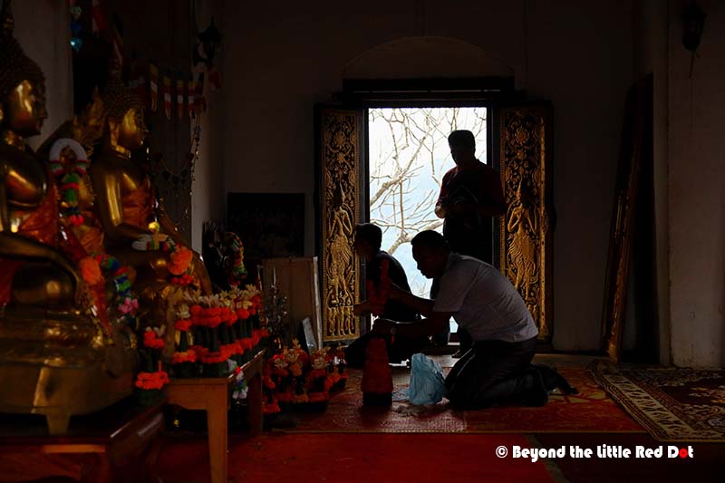 Many locals also come up to the temple on Mt. Phousi to pray.