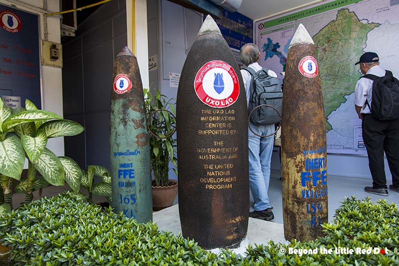 What’s that you may ask? UXO is an acronym for Unexploded Ordnance, and this is one of the sad chapters of Laos’ history. Laos is the most heavily bombed country in the world, courtesy of Uncle Sam. During the Vietnam, War, in order to stop supplies to Communist Vietnam from Laos, the Americans conducted 580,000 air missions and dropped more than 2 million tons of bombs on Laos. Many of these bombs failed to detonate and until today there are 80 million unexploded bombs littering the Laotian countryside, injuring and killing villagers who unknowingly come into contact with them.