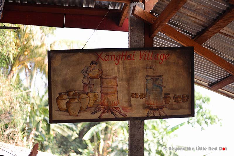 This village was our last stop just before reaching Luang Prabang, and was really prosperous compared to the first village that we visited. It looked more like a small town with concrete buildings and a nice temple. Their claim to fame is their specialty of brewing the local rice wine, which is called Lao Lao, or Laos whiskey.
