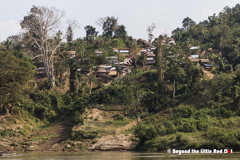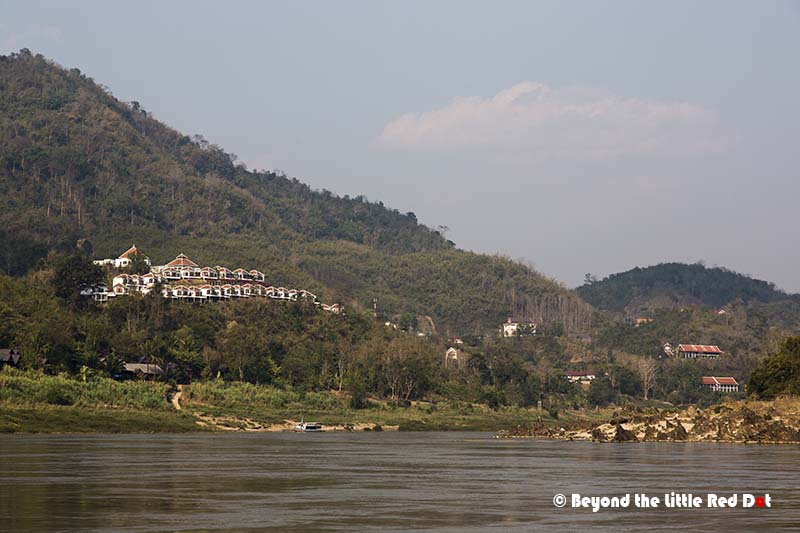 My first sight of Pakbeng as we rounded a bend in the Mekong. A new hotel on the left on a hill have been built, while the rest of the village is further downstream.