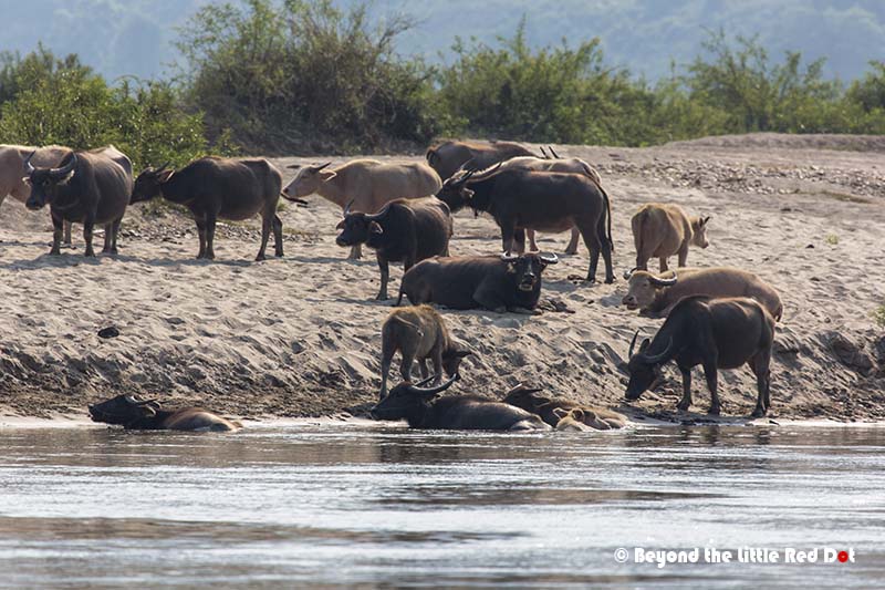 Buffalos can be seen gathering by the shores of the Mekong to drink and soak in it’s waters. Some looked to be from nearby villages, but a lot of them seemed to be wild.