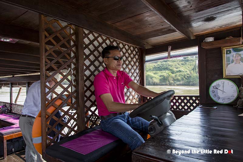 The captain in charge of our slow boat. He owns and operates the boat, while the cruise company contracts his services. I can’t help but stare at his steering wheel. It’s actually salvaged from some old Honda truck.