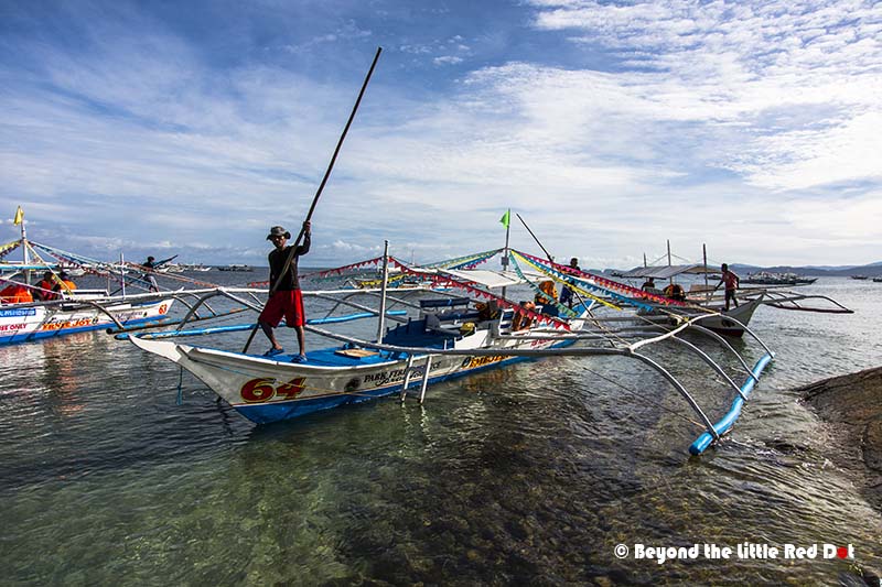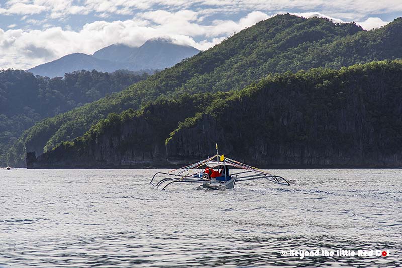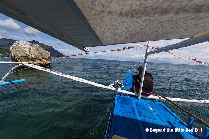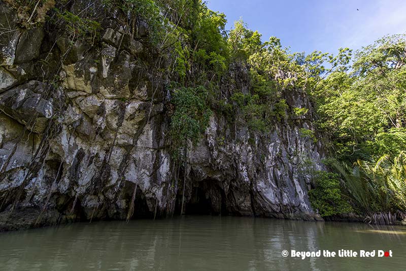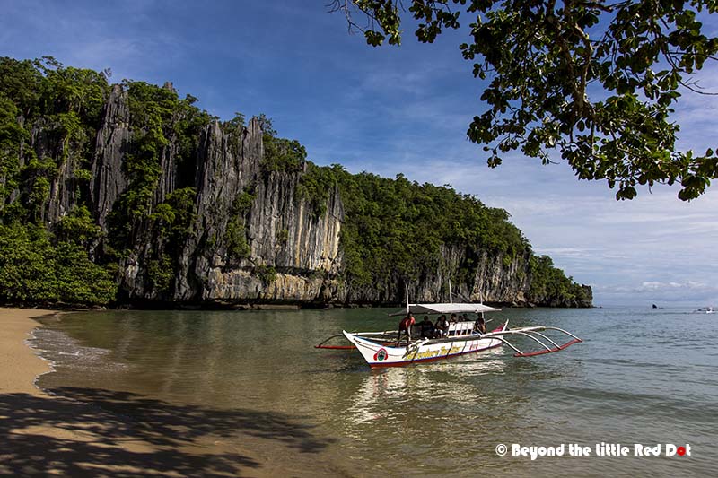 Getting to the PPUR first requires that you board these out-rigger boats at Sabang Wharf. They will bring small groups of visitors to a landing point near the PPUR where you will transfer to smaller paddle boats that can enter the narrow cave and river mouth.After a short wait, my boat came and I had to remember the boat number, as I would have to take the same boat back to the wharf. Plus, the life jackets on this boat will be used throughout the tour, so I had to return it to the boat’s captain.We left Sabang Wharf and made our way to the PPUR. It’s a short boat ride of around 20 minutes.Somewhere behind those steep cliffs lies an underground river.Now is the time to let you know that you have to jump onto the beach and get your feet wet. The best is not to wear expensive shoes during this tour. Flip flops are actually a good idea.