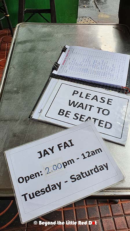 If you are the type that likes to do things prim and proper to ensure your reservation, then you need to call or send an email to them 2-3 months in advance. Yup! That’s how long the waiting list is. You can contact Raan Jay Fai at 092-724 9633, or email them at jayfaibangkok@gmail.com. They do reply promptly to emails, as I’d emailed them to make a reservation and got a reply within a day plus. If you are able to get a reservation through email then you are set. Just turn up on that day and time and bring a copy of your email reservation.