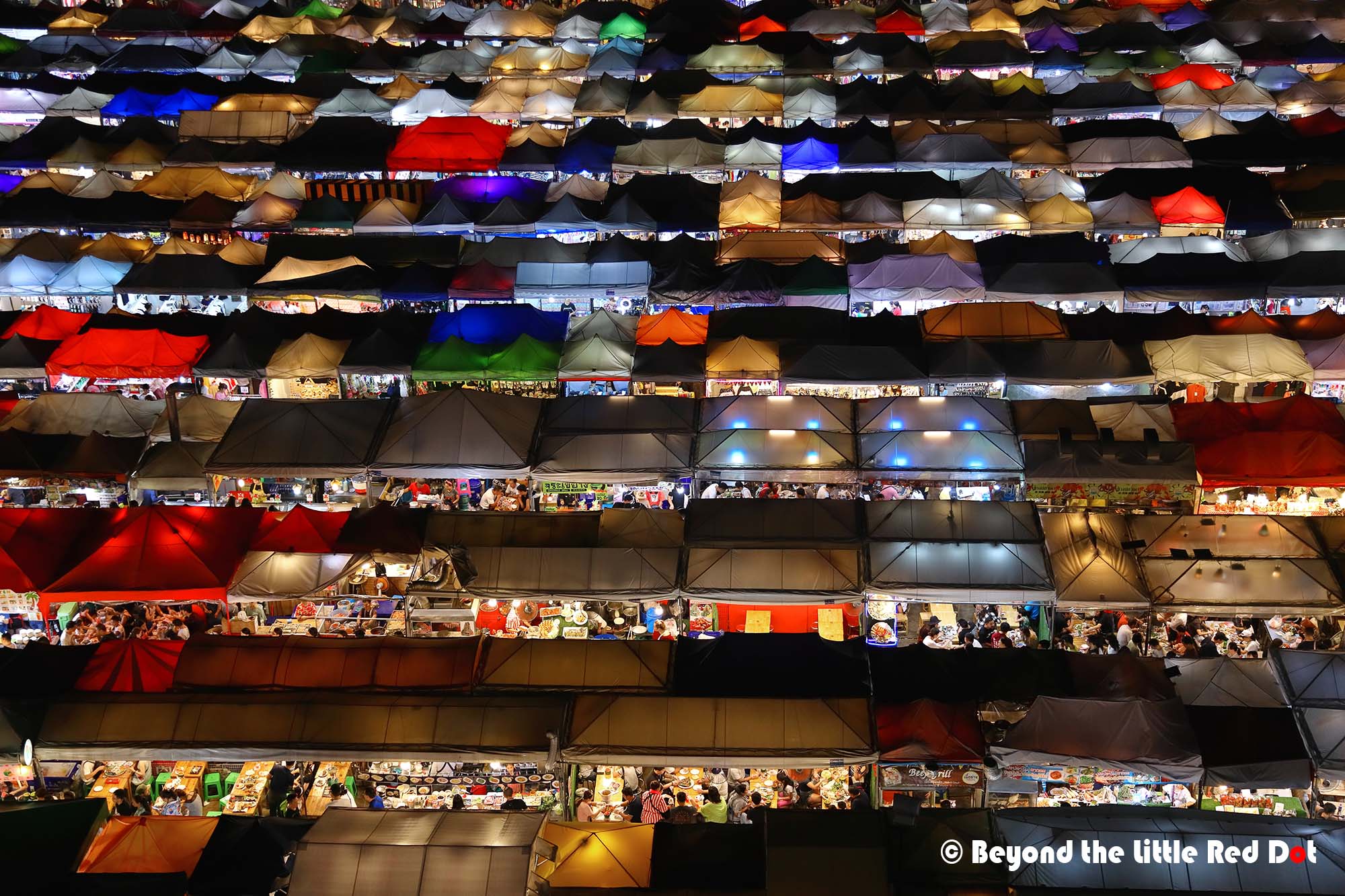 This overhead shot of Rod Fai Market is probably what made it famous. Every night, photographers and Instagrammers will gather at the multi-storey carpark at the nearby Esplanade shopping mall to get this shot.