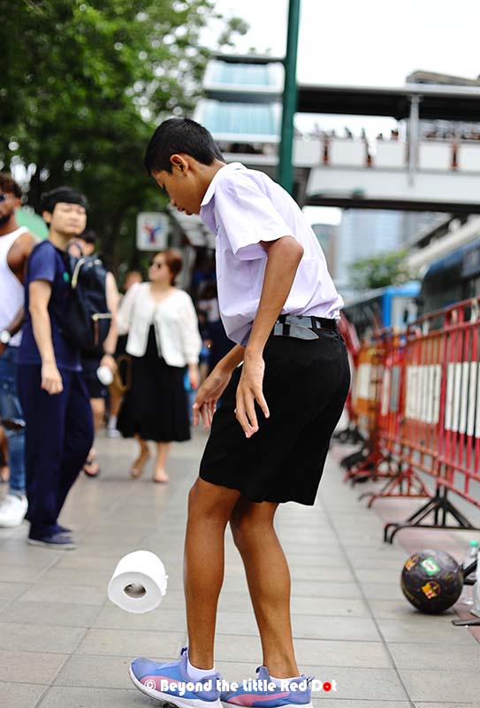 Some kids were trying to make some extra money busking. Like this kid who was quite skilled at keeping this toilet roll in the air without hitting the ground.