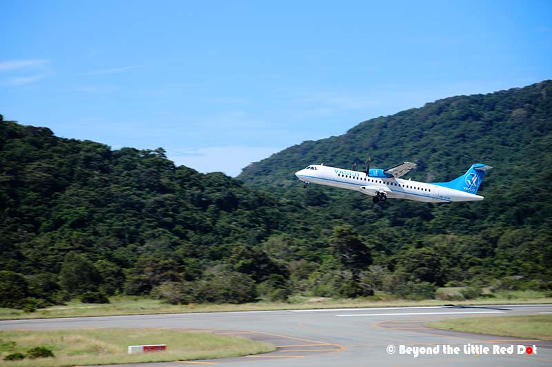 Con Dao’s airport can only accommodate smaller aircraft like the ATR’s. The single runway is only a kilometer long and stretches from one beach to another beach, across an isthmus.