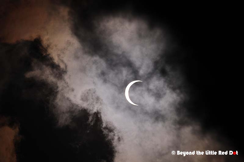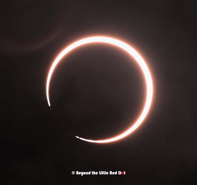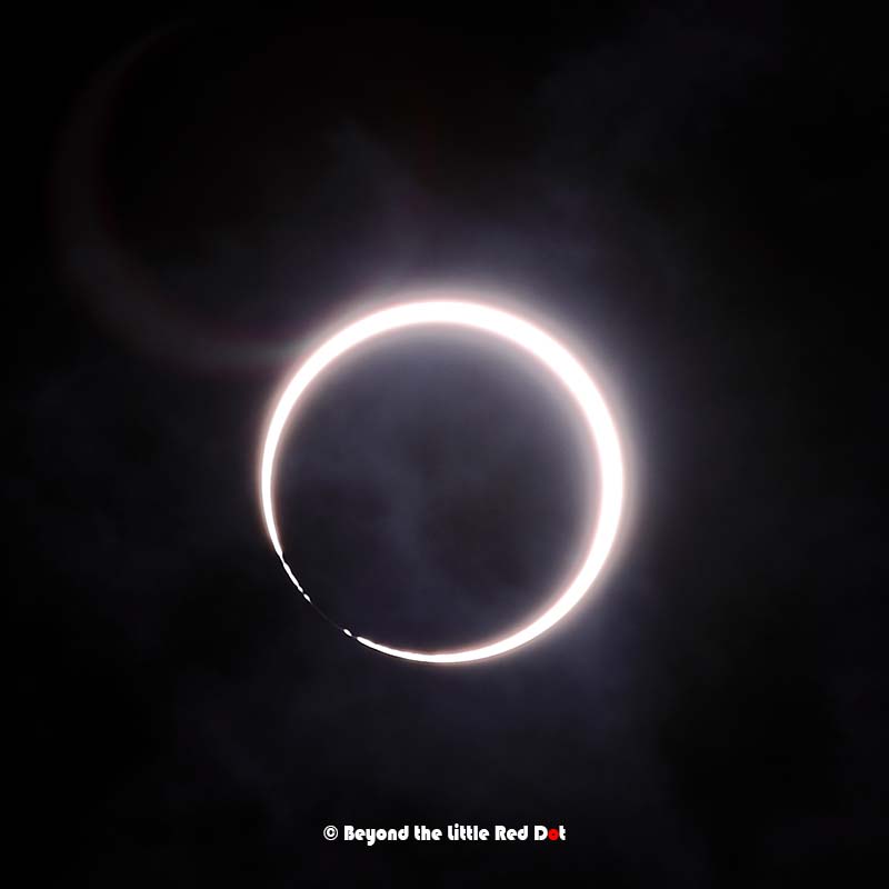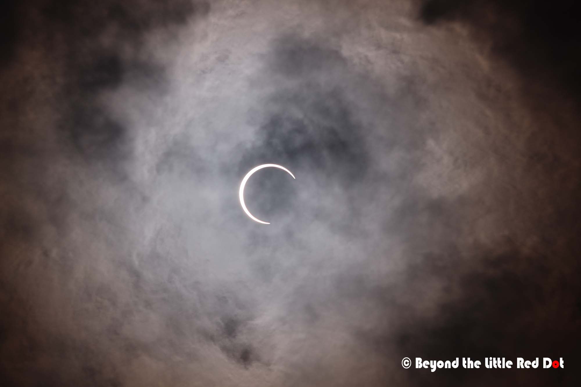Although this was a full eclipse, it was also an annular eclipse where the Moon does not fully cover the Sun. So we would see a “Ring of Fire” around the Moon. Lucky for me, the dark clouds had passed when the full eclipse occurred.
