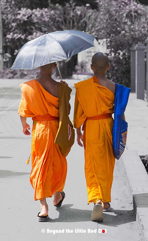 Many of the monks live within the temple compound and can be seen performing their daily chores when they are not studying or meditating. I passed by this temple in the evening and saw a pair of monks carrying a basket of fallen leaves which they have swept from the front entrance of the temple.