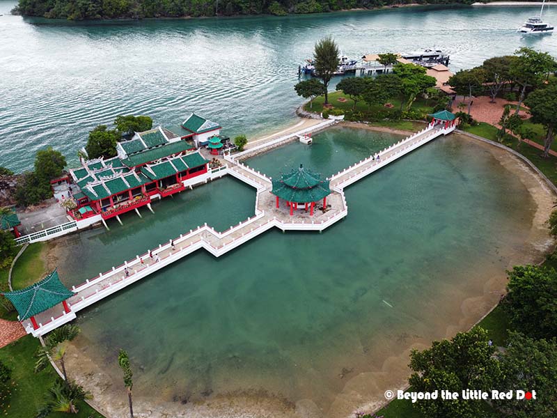 A drone view of the temple on Kusu Island and the artificial lagoon. The main jetty can be seen on the top right.