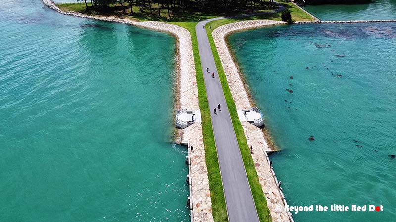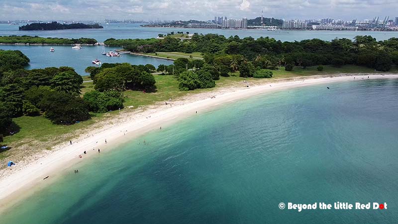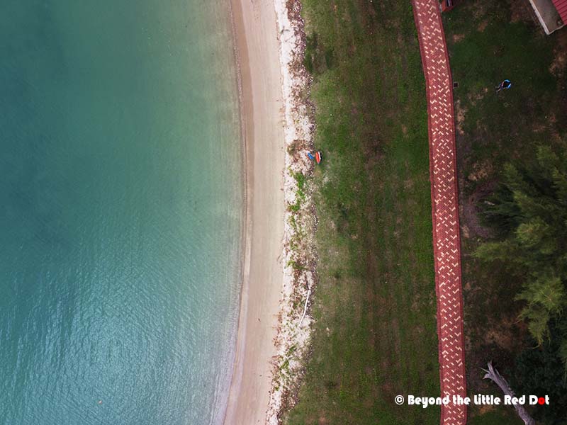 Another drone view of the lagoon at Lazarus Island. And you can see Kusu Island in the top left.