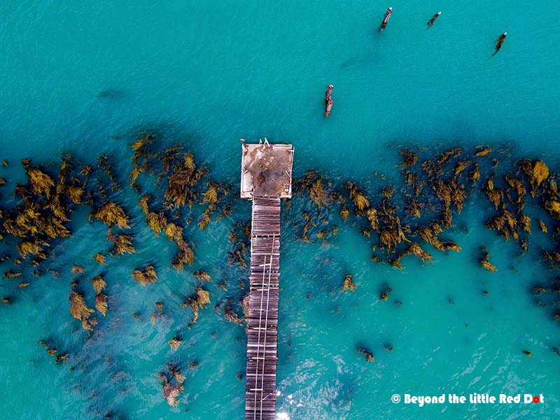 Along the shore and next to the main jetty is this old jetty which has fallen into disrepair. I think this is an interesting shot with a drone, as you can see the seaweeds which are growing along the shore.