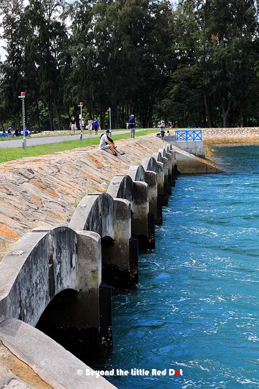 There are several channels going through the causeway to allow sea currents to pass through. There many anglers fishing here waiting to make a big catch.