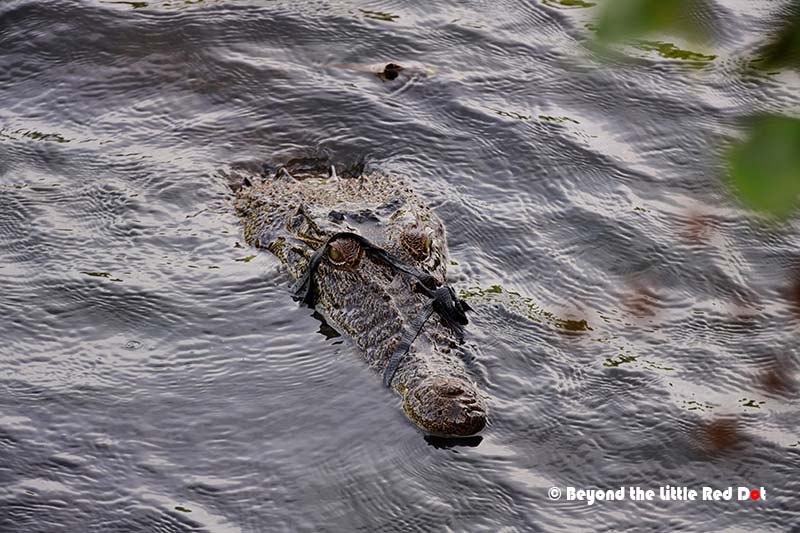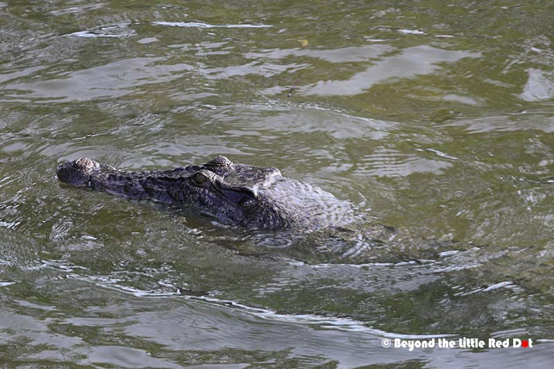 The first croc that I spotted looked like a piece of driftwood floating in the water. But then it started bobbing up and down, as the crocodile would submerge itself periodically to hide from being spotted by potential prey. This was a small one, maybe 1 meter or slightly larger.