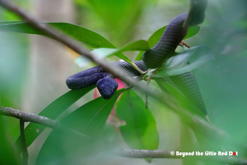 Finally, a mangrove pit viper which was perched on a branch just beside the walking path. I wouldn’t have spotted it but for other photographers who pointed it out. This is an extremely venomous snake whose poison can kill a adult human.