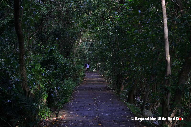 One of the many tracks that crisscross the Sungei Buloh Wetland Reserve with tidal mangrove swamps on either side. A crocodile or some other animal could be hiding just touching distance from you.