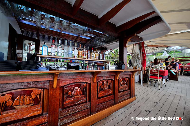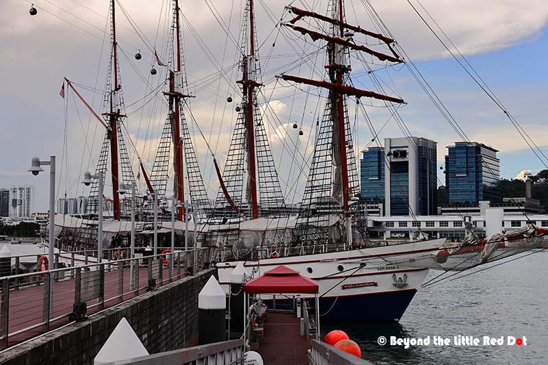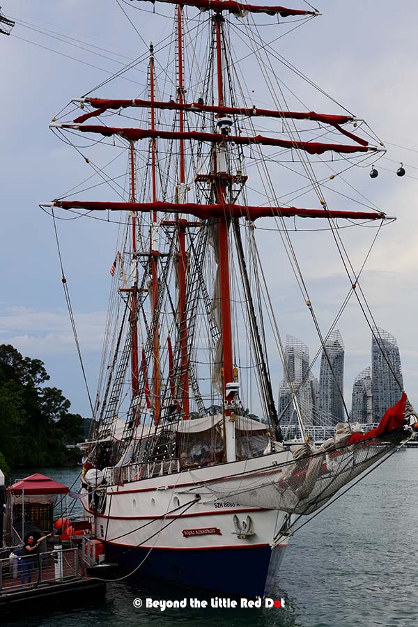 While modern Singapore is all about mega-sized container ships and fuel tankers driving the country’s economic engine, and small bumboats plying the Singapore River for tourists, there is an old fashioned sailing ship where you can have dinner onboard while sailing the seas like in the old days before the industrial revolution.