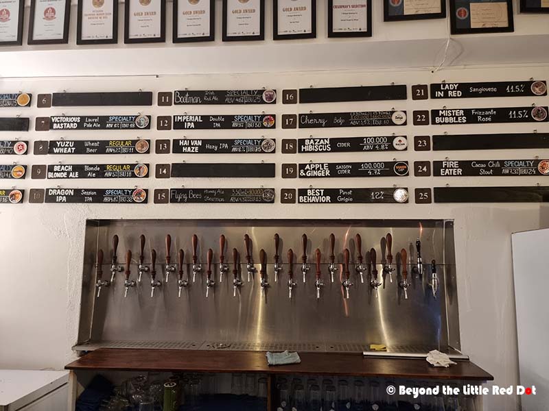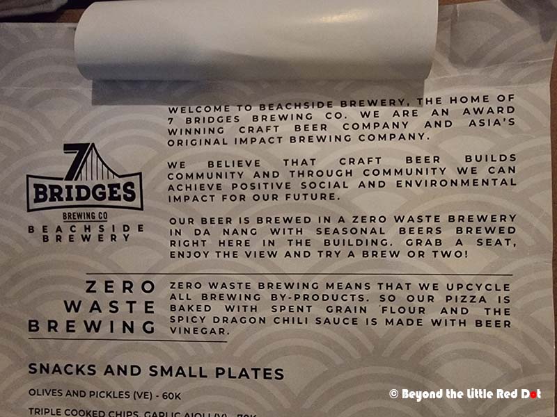 Located at the northern end of Danang’s beach, right next to Son Tra, is this cool looking restaurant. As you can see, it was still raining even after I got back from Ba Na Hills.The first floor where you can find a micro brewery. My friend says this is where they do experiments to try new craft beer flavours. They do their actual volume brewing in a larger brewery in Da Nang’s countryside.The second floor with the cool looking void where you can look down on the brewing equipment.And finally the Bohemian looking third floor which overlooks the sea. There’s an open area where we could have barbeques.How they try to achieve zero waste by upcycling the waste from the beer brewing process into food items.Bread and pizza dough which is actually made from waste beer grains. It’s quite delicious too!The range of beers for tasting is amazing.Craft beers never looked so tasty.