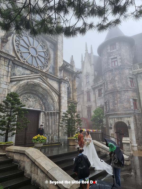 With realistic looking replica gargoyles and medieval architecture, you’ll never guess that this isn’t in Paris.It seems that the French Village and Golden Bridge is a popular place to take wedding photos. After all, why go to Europe if Europe can come to you.Its a mish mash of European designs here. I could see Greek and Italian statues and there’s even a German beer garden, all in a French medieval village.There is a fantasy land and amusement park which is free to enter with the standard ticket. The Free Fall ride in the amusement park seems to be the most thrilling ride around there. Finally when I was leaving to go back to Da Nang after lunch, the weather started to clear giving me a good look at the Golden Bridge from the cable car.