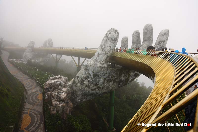The main entrance to Ba Na Hills and the cable car station is here. The sales of the tickets is also done here. After buying your tickets, you can proceed straight to the cable car, but not before passing through a replica of an ancient palace and old Hoi An.There are 4 different cable car routes. But when I was there, only 2 routes were in operation. They claim that this is the longest cable car ride covering more than 5.8km. You can see all the way to Da Nang and the coast in clear skies.The weather can change up in the mountain. Although it was just cloudy at the base, it was foggy and raining at the top of the mountain.I arrived at Marseille station after a long cable car ride of almost 20 minutes. You will be 1,485m above sea level, so the temperature here is much cooler than ground level.If you want to see the Golden Bridge first then take the cable car to Marseille Station. My visit to Ba Na Hills was the second day of constant rain due to a tropical storm off the coast of Vietnam. So my first view of the Golden Bridge was foggy with strong winds and a drizzle. Not the kind of day you want to spend in the open.Everyone was determined to have their Instagram moment despite the wind and rain.From Marseille Station, there is a connecting cable car to Louvre Station where the French Village is. This is a theme park in the design of a medieval French village, complete with castles, taverns and a scaled down Notre Dame. You’ll even find a Mercure Hotel here.