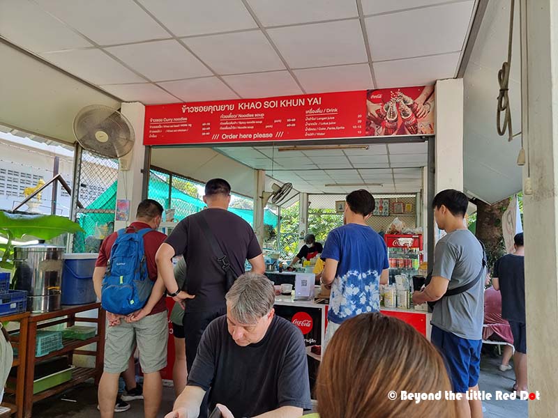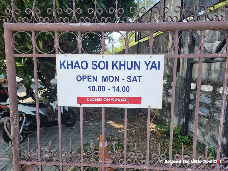 I made my way in the morning heat to Khao Soi Khun Yai. Located along the ancient northern city wall of Chiangmai, you will find this well known street food shop. I had no problem getting a Grab ride and keying in the name of the place as my destination.